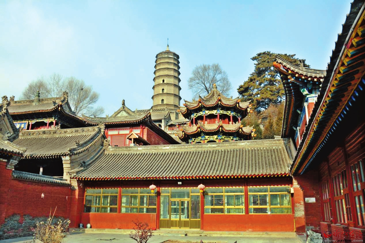 尊勝寺位于五臺縣茹村鄉(xiāng)龍王堂村東1000米的虒陽嶺,歷來是五臺山朝山拜佛主要的通道之一,故稱“五峰咽喉”“臺山門戶”。相傳唐代儀鳳元年(公元676年),印度佛陀波利尊者,前來五臺山朝臺時,在虒陽嶺遇到文殊菩薩現(xiàn)圣,受菩薩之囑托,返西域奉請《佛頂尊勝陀羅尼經(jīng)》梵本,后于唐弘道元年(公元683年)回國取《佛頂尊勝陀羅尼經(jīng)》于長安譯畢后,仍取道虒陽嶺朝臺,并對原存寺廟進(jìn)行了擴建,取名“善住閣院”。北宋天圣四年(公元1026年)重建,稱“真容禪院”,明萬歷年間(公元1573年至公元1620年)修復(fù)后改稱“尊勝寺”至今。民國初期(公元1922年)藏峰巖公大和尚重修,始成現(xiàn)在規(guī)模?!拔母铩焙蟮淖饎偎?,殿堂頹廢,寺貌蕭然。1986年由本寺僧人——久居香港的智開和金山法師重修,歷經(jīng)十載,舊貌換新顏,尊勝寺變成一座巍峨壯觀、金碧輝煌的巨剎。2019年10月7日,由國務(wù)院公布為全國重點文物保護(hù)單位。