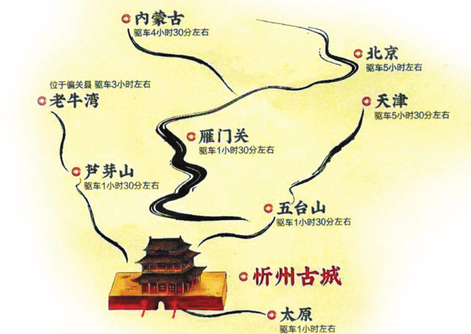 來(lái)到這里,你可以站在溝壑縱橫、梁峁起伏的黃土高原,欣賞懸崖峭立、水石相激的晉陜峽谷,也可以在古木參天、濃蔭蔽日的森林公園里散步,在百草茂盛、一望無(wú)垠的高山草甸上仰望星空。你可以游覽世界文化景觀遺產(chǎn)、佛教名山五臺(tái)山,也可以領(lǐng)略秀容、岢嵐、寧化、代州4座悠遠(yuǎn)古城的各有千秋,登攀三關(guān)營(yíng)堡、歷朝歷代的邊塞長(zhǎng)城。你可以在偏關(guān)老牛灣古渡、河曲西口古渡搖櫓渡河,回想晉商的輝煌,也可以身臨夜襲陽(yáng)明堡飛機(jī)場(chǎng)遺址,重溫榮耀,感受歷史的震撼……