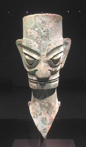三星堆博物館里展出的青銅人像。