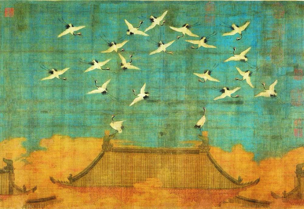北宋政和二年(1112年)上元節(jié)次夕,天清氣朗,群鶴飛鳴,盤(pán)旋于宮殿上空,久久不肯離去。這讓宋徽宗趙佶產(chǎn)生了“仙鶴告瑞”的聯(lián)想,故欣然命筆,將目睹的這一幕繪于絹素之上,一幅千古名作《瑞鶴圖》就此誕生。在題畫(huà)詩(shī)中,趙佶以瘦金體記述了事件原委。他在詩(shī)中將群鶴與古籍中提及的祥鸞、赤雁相提并論,還特意強(qiáng)調(diào)了鶴與長(zhǎng)生不老的關(guān)聯(lián),將它們與蓬萊仙山聯(lián)系在一起,指出其壽命能夠長(zhǎng)達(dá)千年。雖然趙佶的祥瑞之愿難免落空,但鶴確實(shí)是一種長(zhǎng)壽的動(dòng)物。人工飼養(yǎng)的丹頂鶴能活到七十多歲,這相對(duì)于古人的平均壽命,實(shí)在是很可觀了。