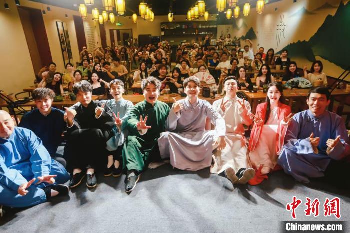 “之前只在線上聽過傳統(tǒng)相聲,來了才知道相聲還能這么玩,我錄制了視頻發(fā)在朋友圈,好幾個(gè)朋友都說要來打卡?!薄癦世代”張倩是這家相聲館的“老粉”,每周從不缺席?!拔疫€‘安利’給了丈夫和孩子,我們經(jīng)常一家三口來聽相聲,孩子現(xiàn)在都能說兩句貫口了。”張倩說。