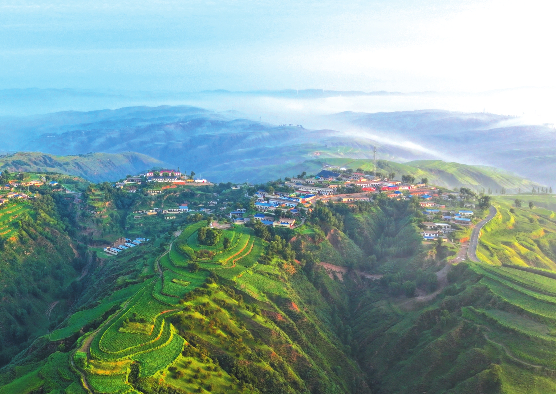 顧大明對(duì)河曲縣傾力開發(fā)翠峰山旅游資源、打造趙家溝寫生基地深表欣慰。今日翠峰山松柏蒼郁、群峰拱峙,登頂俯瞰,晉西北黃土高原地貌盡收眼底,雄渾氣象令人頓生“會(huì)當(dāng)凌絕頂”之慨?!斑@里不僅有厚重的黃土,更有勤勞勇敢、世代守護(hù)家園、將荒原變綠地的人們?!彼で闈娔瑢邀愶L(fēng)景與奮斗身影一并融入筆端。