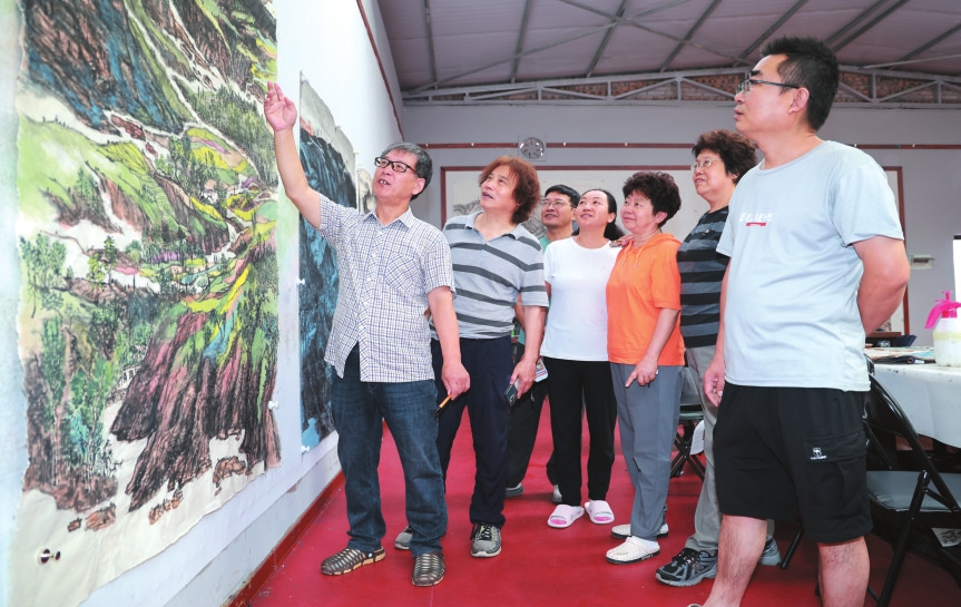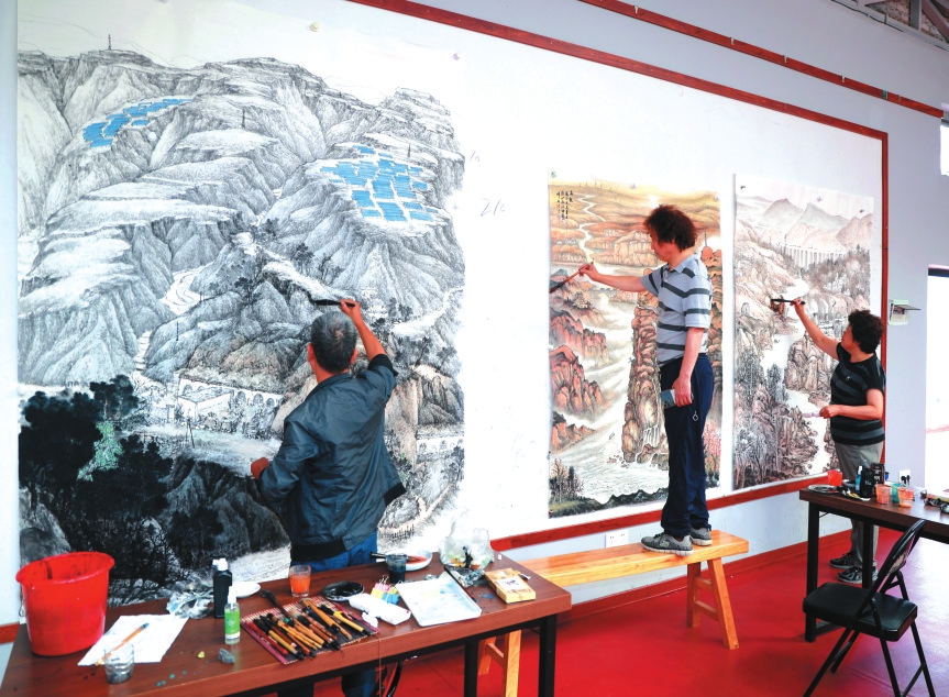 中國青綠山水畫院秘書長金石已是二度造訪:“每次感受都不同,黃土高原總能滋養(yǎng)心靈,激發(fā)無盡創(chuàng)作靈感?!贝诵兴で閾]毫,創(chuàng)作了《雪域高原》《春曉趙家溝》《翠綠趙家溝》三幅作品,并已將“金秋趙家溝”主題納入明年的創(chuàng)作藍(lán)圖。