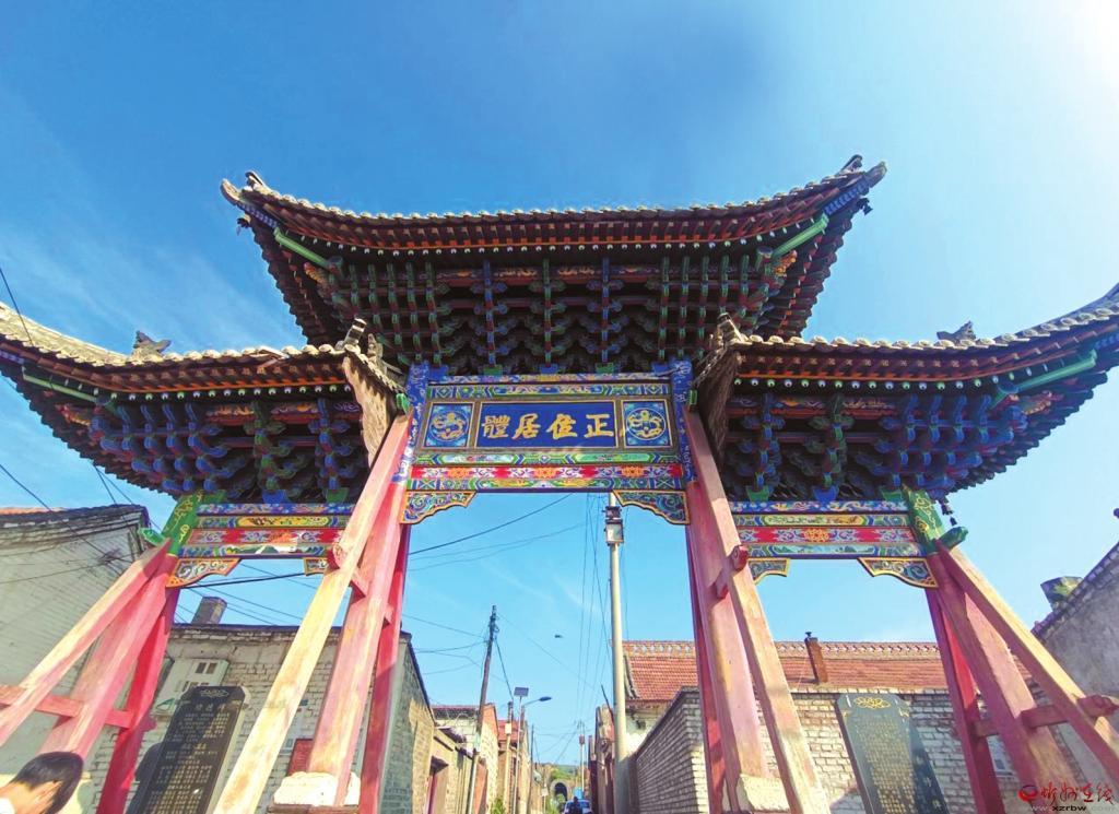 五寨縣三岔木牌坊坐落于三岔堡十字大街的北口,始建于明萬歷九年(1581年)。木牌坊坐北朝南,座基為60厘米高的石砌臺基。牌坊呈三項疊襯“品”字形制,四楹三門,坊高7.25米,通寬11.2米,其中門高3米,寬3.15米,車馬通行;兩邊門略低,高2.65米,寬2米,只呈門樣,不作通行。四楹都用雙木斜卡,并抱有雕獅的石鼓,以鐵條箍制,既固根基,又顯威嚴。欄坊下裝有木刻匾額,正面題“正位居體”,背面題“大觀在上”。頂端起脊彩飛,雙層檐頭,青瓦蓋頂;下檐五步彩飛檐頭拱,結(jié)構(gòu)奇巧,造型美觀,檐頭四角掛有風(fēng)鈴,微風(fēng)輕拂,鈴聲悠揚,蔚為壯觀。三岔木牌坊是五寨縣境內(nèi)僅存的一座木結(jié)構(gòu)明代古建筑,具有較高的建筑文化水平和藝術(shù)鑒賞價值。2007年6月6日,忻州市人民政府公布其為市級文物保護單位。