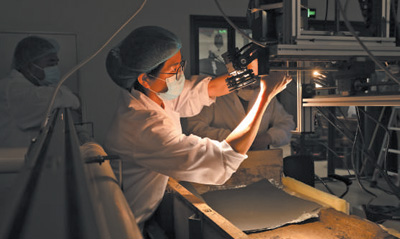 考古人員在實(shí)驗室,對三星堆出土文物進(jìn)行高光譜掃描。廣漢市委宣傳部供圖