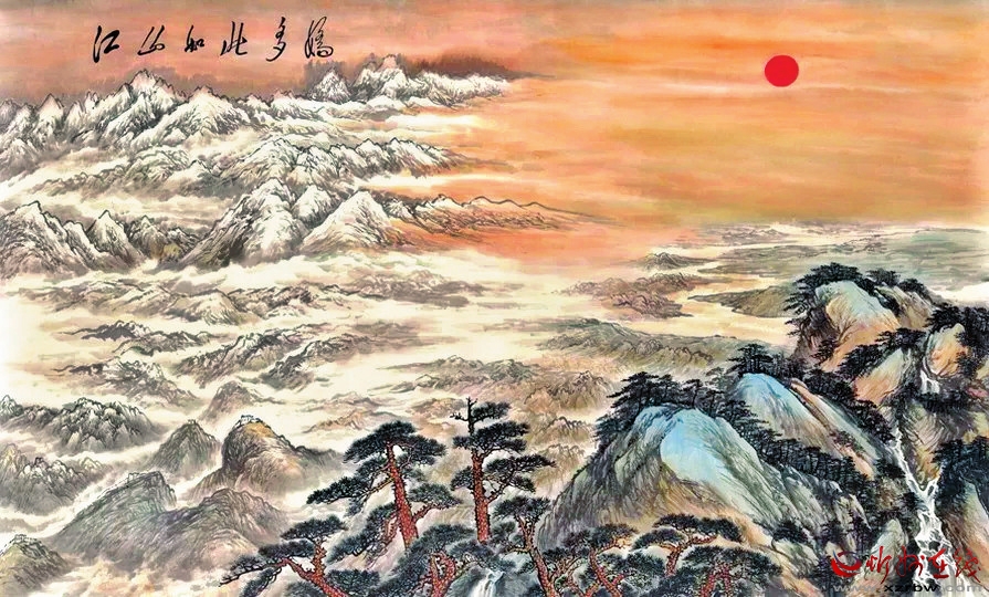 近現(xiàn)代以來,隨著人們多維的欣賞能力和畫家對自然觀察能力的深入,雪景山水畫在內(nèi)容方面有了顯著變化。這種轉型雖仍以“師造化”為基礎,但西方繪畫理論的引進,透視、光影等要素的借鑒,使繪畫技法表現(xiàn)出新的發(fā)展趨勢。中國雪景山水畫在新歷史時期,順應發(fā)展契機,得到振興。20世紀初,陶冷月便致力于中西融合的探索,將圓月、雪山、淡云等和諧統(tǒng)一在一片冷逸空靈的詩意世界中。他的《雪月山水圖》中,水面因月光反射閃爍著波光,這也是他營造意境的獨特手法,使之更為靈動。傅抱石一改明清輕柔疏淡的氣息,彰顯民族振奮的活躍力。他與關山月合作繪成的《江山如此多嬌》,將詩詞中“北國風光,千里冰封,萬里雪飄”的壯闊場景表現(xiàn)得淋漓盡致。