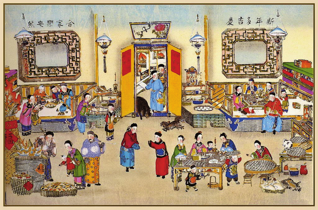 跟春節(jié)一墻之隔的是除夕。除夕對年長的人們來說,最惦念的便是那頓美味的年夜飯。作為年前最豐盛的一頓大餐,年夜飯講究既要吃飽,更要吃剩,因?yàn)椤笆!奔础坝唷?,吃剩才叫“有余”,寓意從舊年到新年年年有余。年夜飯的妙味,還在于家人的團(tuán)圓。年夜飯后,開始守歲,即熬年夜。長幼聚歡,直到午夜之后方睡,或待天明。正月初一凌晨,雷鳴般的鞭炮驟然炸響,新年的序幕在一片爆竹聲中開啟了。鞭炮猶如舞臺上的演員,以中國傳統(tǒng)說唱的方式,開始了一場與歡樂有關(guān)的大型實(shí)景演出,將人們一同帶入幸福深處。