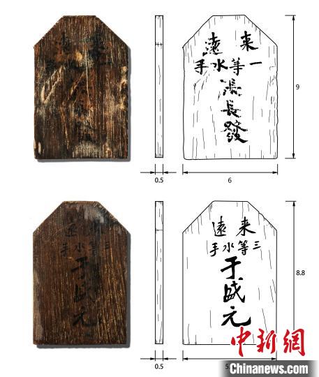 "來(lái)遠(yuǎn)"艦遺址發(fā)掘出水兩塊水手身份木牌。山東省水下考古研究中心供圖