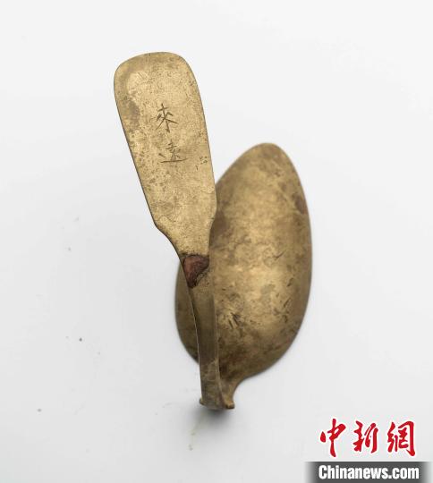 刻有“來(lái)遠(yuǎn)”字樣的鍍銀湯勺。山東省水下考古研究中心供圖