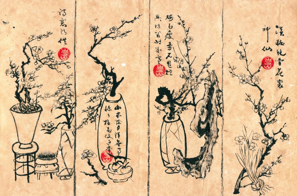 明代文震亨在其《長物志》中有一段評述梅的文字:“幽人花伴,梅實(shí)專房。取苔護(hù)蘚封,枝稍古者,移植石巖或庭際,最古。另種數(shù)畝,花時(shí)坐臥其中,令神骨俱清,綠蕚更勝,紅梅差俗;更有虬枝屈曲,置盆盎中者,極竒。蠟梅磬口為上,荷花次之,九英最下,寒月庭際,亦不可無?!?/p>