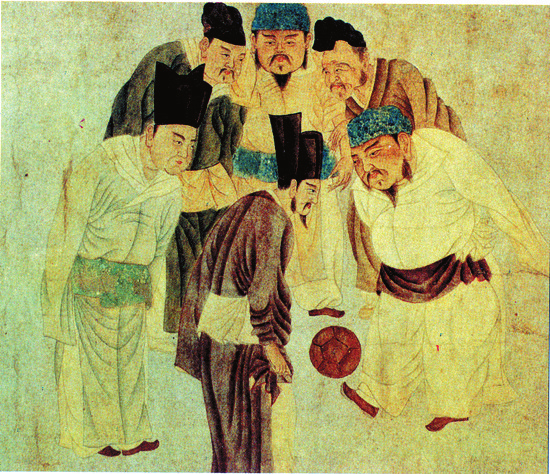 兩宋時(shí)期,鞠從八片堅(jiān)皮縫制發(fā)展成十二片香皮砌成,且“不漏線(xiàn)角”,重量“正重十二兩”,外形“硬湊十分圓”。工藝的改進(jìn)推動(dòng)了球技的發(fā)展,出現(xiàn)了高俅、柳三復(fù)等憑借高超球技獲得官位的蹴鞠高手。