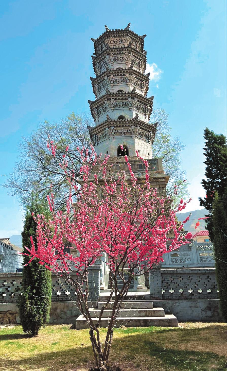 洪福寺磚塔位于代縣峪口鄉(xiāng)峪口村西。寺毀僅存塔。據(jù)塔基題記載,該塔在明嘉靖四十五年(1566年)由邑人兵部侍郎謝蘭發(fā)愿而建。