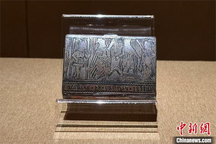 展覽展出的1898年印有銘文的銀質(zhì)煙盒,小巧實(shí)用,上面刻有“1898”及亞美尼亞文字“阿爾塔什斯”“薩特尼克”。據(jù)悉,阿爾塔什斯王朝的建立者阿爾塔什斯一世和阿蘭王女兒薩特尼克公主的故事,可追溯至公元前2世紀(jì),他們的婚姻被視為不同民族和文化統(tǒng)一的象征。