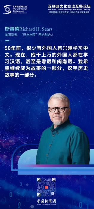 中新網(wǎng)烏鎮(zhèn)11月21日電(林卓瑋)“事物總是在變化,但文化的傳承永遠需要我們?nèi)ヅ??!?1日,在世界互聯(lián)網(wǎng)大會烏鎮(zhèn)峰會互聯(lián)網(wǎng)文化交流互鑒論壇上,被譽為“漢字叔叔”的美國漢學家斯睿德(Richard Sears)從創(chuàng)新傳承漢字的個人經(jīng)歷出發(fā),講述了一段跨越75年、連接中美的傳奇故事。