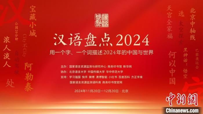 由國(guó)家語言資源監(jiān)測(cè)與研究中心、商務(wù)印書館等聯(lián)合主辦的“漢語盤點(diǎn)2024”20日在京啟動(dòng),“用一個(gè)字、一個(gè)詞描述當(dāng)年的中國(guó)與世界”,鼓勵(lì)全民用語言記錄生活,描述中國(guó)視野下的社會(huì)變遷和世界萬象。