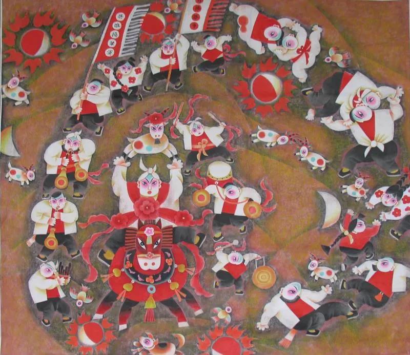 張俊的畫非常特別,整個展覽上再找不出這種風(fēng)格,有山西民間藝術(shù)的東西,表現(xiàn)了山西的風(fēng)情,用自己的藝術(shù)語言表現(xiàn)本地域的民情風(fēng)俗是別人比不了的。畫一批拿出去,在全國也是獨(dú)特的、能站住腳的。