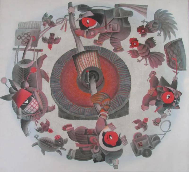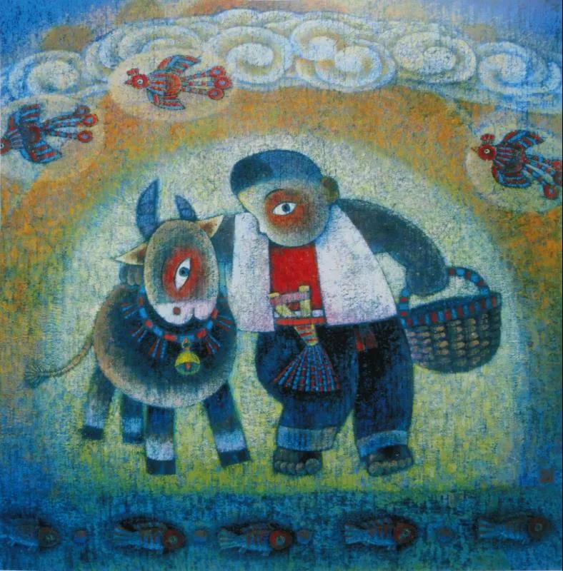 1973年開始自學(xué)美術(shù)并業(yè)余創(chuàng)作,專國畫兼及水粉、漫畫、剪紙。數(shù)十年來廣采博收,上溯遠(yuǎn)古巖畫、畫像磚、石、帛畫、洞窟壁畫、院體工筆以及民間剪紙、泥塑,面塑、年畫;橫向上油畫、版畫、裝飾、現(xiàn)代設(shè)計乃至西方藝術(shù)皆有涉獵吸收,融匯貫通,形成了一種既富傳統(tǒng)民族特色、鄉(xiāng)土味濃郁,又極具現(xiàn)代感的、自成一格的個人風(fēng)格。