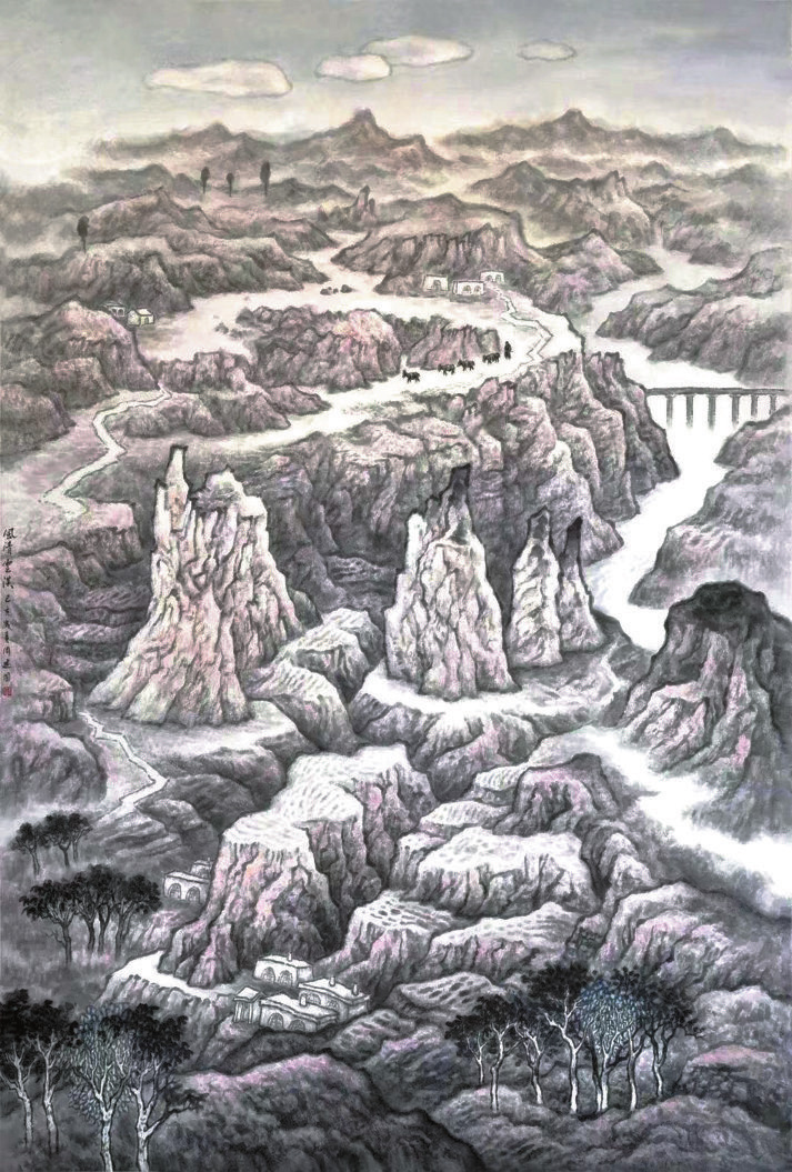 中國現(xiàn)代畫家、美術(shù)教育家徐悲鴻先生曾說:“道在日新,藝亦須日新,新者生機(jī)也,不新則死?!币馑际钦f,藝術(shù)需要不斷追求,不斷創(chuàng)新,才能永葆生命活力??瓢喑錾淼闹芙▏?,躬耕國畫山水40余載,歷經(jīng)多年藝術(shù)實(shí)踐,在繼承傳統(tǒng)藝術(shù)精華的同時(shí),開創(chuàng)了獨(dú)具特色的藝術(shù)語言,其作品不僅體現(xiàn)了扎實(shí)的繪畫功底,還展現(xiàn)出持之以恒的藝術(shù)探索精神。