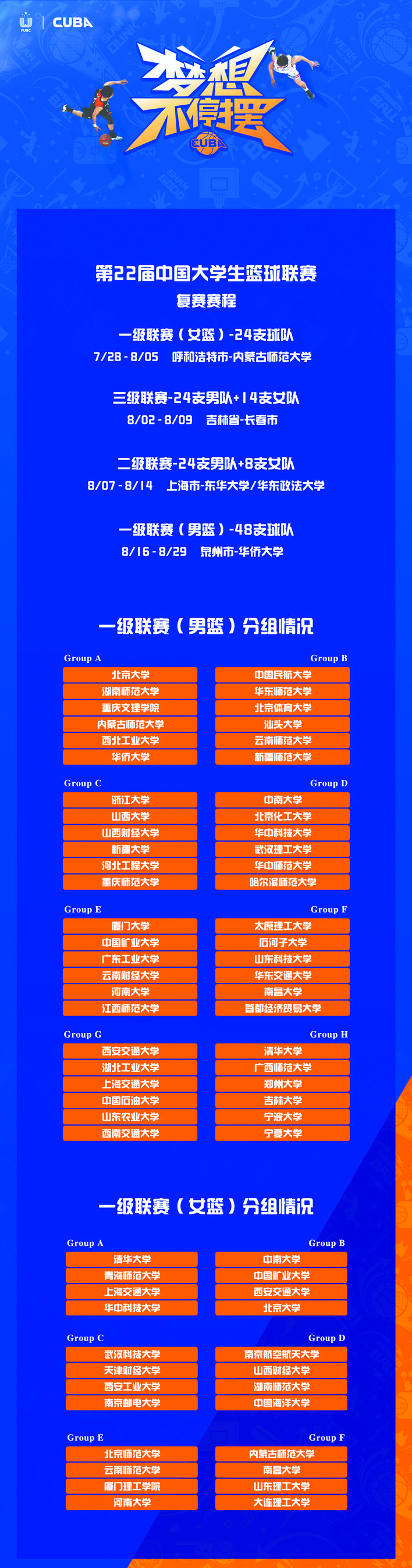 和職業(yè)聯(lián)賽不同,從決定復(fù)賽到打完決賽,留給本賽季CUBA只有不到兩個月的時間。在這種情況下聯(lián)賽組委會緊急調(diào)整,需要在確保賽事安全、符合防疫規(guī)定的前提下,設(shè)計一個精彩、科學(xué)的賽程,讓本屆畢業(yè)生順利完賽、不留遺憾。