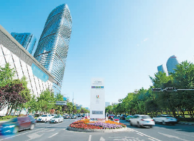 位于成都天府大道的大運(yùn)會(huì)倒計(jì)時(shí)裝置。