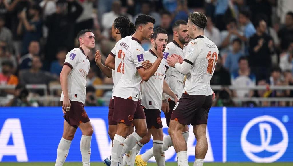 曼城隊球員在比賽中慶祝。(圖片來自國際足聯(lián)官網(wǎng))