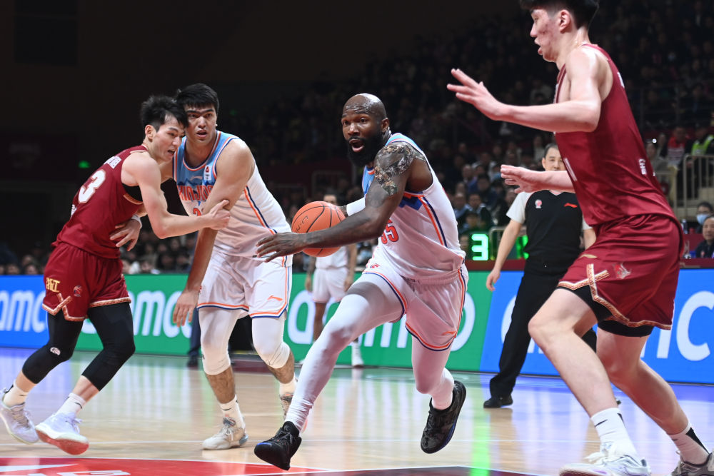 1月15日,新疆隊(duì)球員瓊斯(中)在比賽中進(jìn)攻。新華社記者 黃宗治 攝