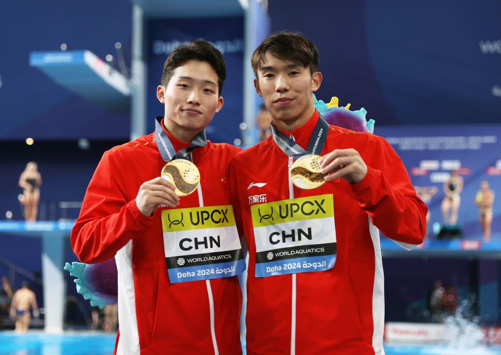 男雙3米板決賽中,王宗源/龍道一以442.41分的成績奪冠。這是王宗源繼2022布達(dá)佩斯、2023福岡后,第三次奪得世錦賽該項(xiàng)目冠軍。意大利組合馬爾薩利亞/托奇、西班牙組合阿瓦迪亞/博伊西爾分獲亞軍和季軍。