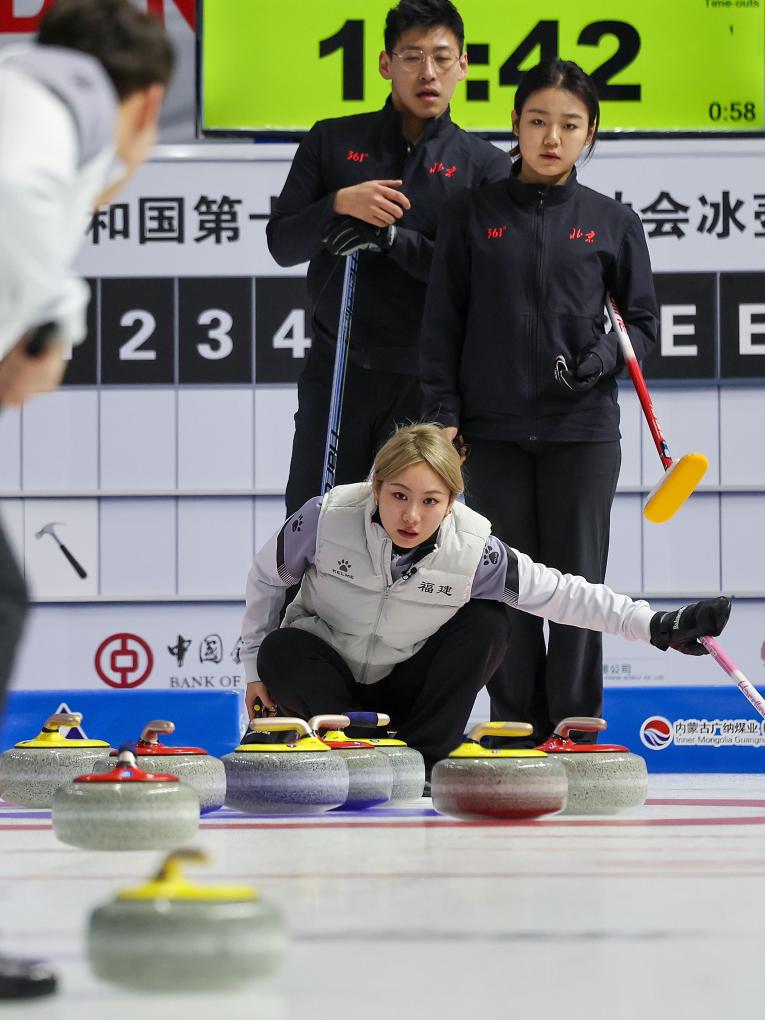 新華社呼和浩特2月19日電(記者趙澤輝、戴錦镕、劉藝淳)19日,在第十四屆全國冬季運(yùn)動會冰壺(公開組)混雙半決賽中,黑龍江隊以10:2大勝吉林隊,福建隊則通過加局以8:7險勝北京隊,挺進(jìn)決賽。