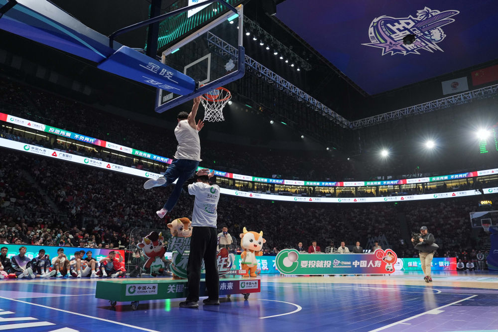 中場(chǎng)休息期間進(jìn)行了三個(gè)單項(xiàng)賽的比拼。主場(chǎng)作戰(zhàn)、來(lái)自福建隊(duì)的黎伊揚(yáng)獲得技巧挑戰(zhàn)賽冠軍。山西隊(duì)原帥在三分球大賽決賽投出25分,以一分優(yōu)勢(shì)險(xiǎn)勝龍獅隊(duì)賈明儒。扣籃大賽的冠軍是特邀外卡球員萬(wàn)磊,他在比賽中穿著牛仔褲飛躍一人,完成“蝎子擺尾”式的扣籃。