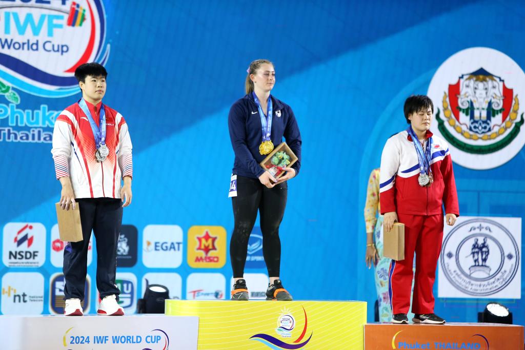 全場(chǎng)比賽里夫斯6次試舉全部成功。她挺舉第三次試舉150公斤成功,排名第一,并以268公斤的總成績(jī)奪金。廖桂芳挺舉開把149公斤全場(chǎng)最重,并在第二次試舉時(shí)成功。她第三次試舉154公斤時(shí)未能完成,挺舉排名第二,并以抓舉115公斤、挺舉149公斤、總成績(jī)264公斤拿到總成績(jī)銀牌。