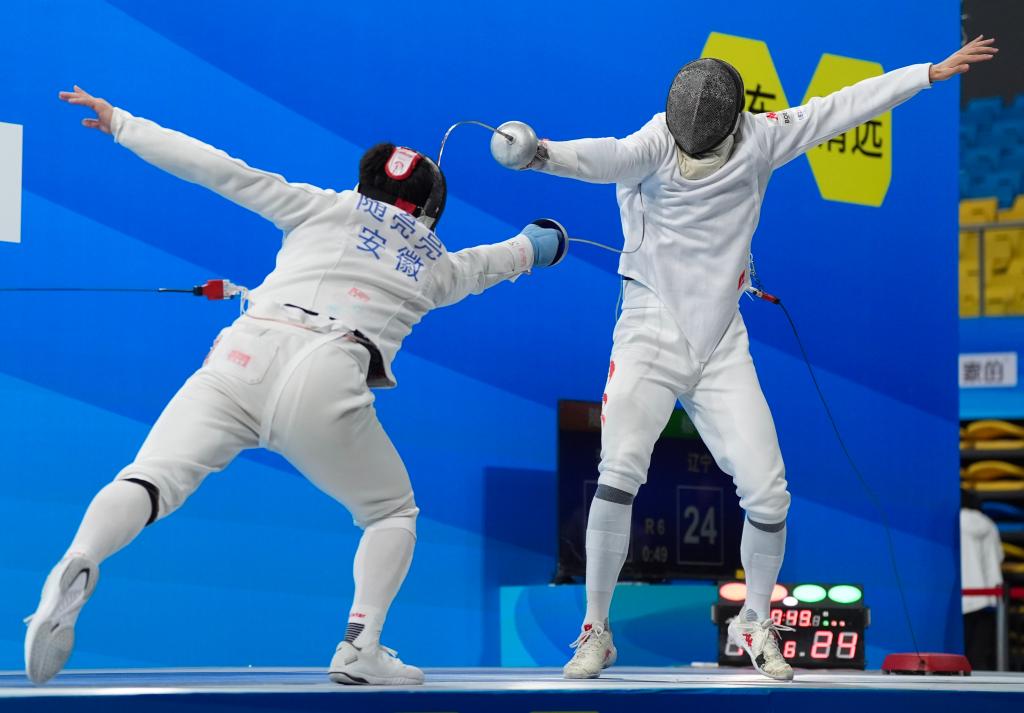 男重團體決賽中,由張新堃、楊豐名、于夢想、龍龍組成的遼寧隊43:36戰(zhàn)勝國手蘭明豪、俞樂凡領(lǐng)銜的安徽隊,收獲本賽季全國擊劍冠軍賽分站賽兩連冠,于夢想也連續(xù)兩站比賽為遼寧隊得到最高分。