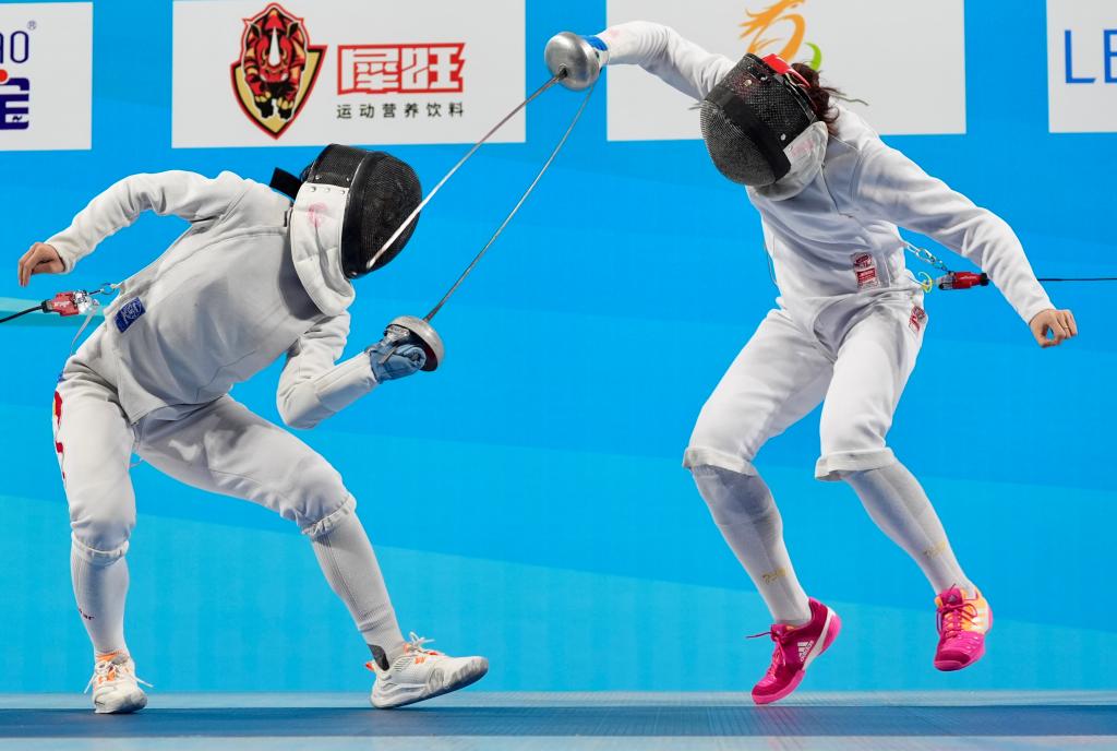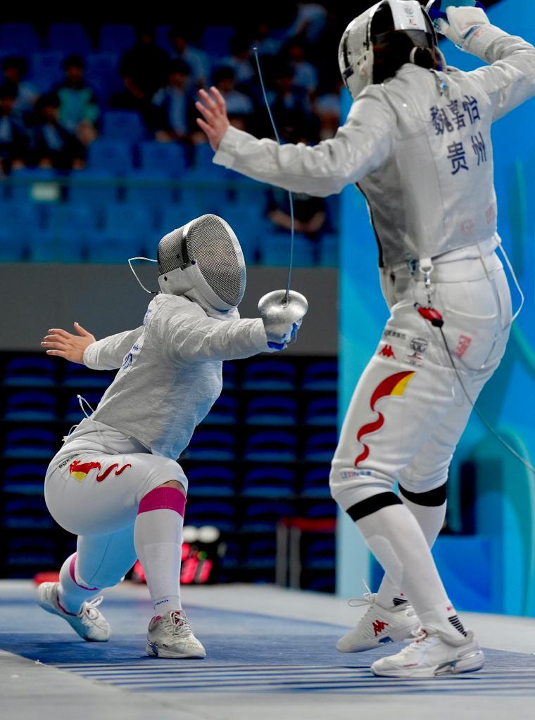 江蘇隊傅穎(左)與貴州隊魏嘉怡在比賽中。