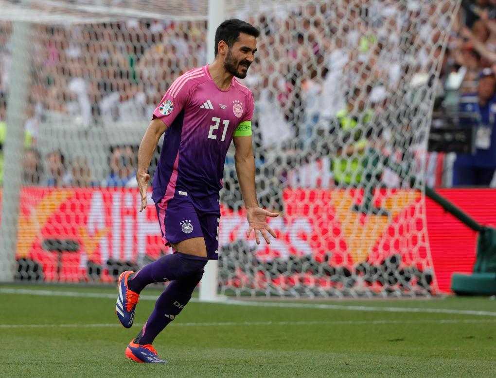 6月19日,德國(guó)隊(duì)球員京多安進(jìn)球后慶祝。新華社發(fā)(菲利普·魯伊茲攝)