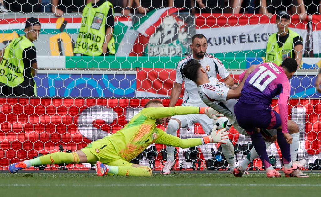上半場(chǎng)補(bǔ)時(shí)階段,匈牙利隊(duì)得到前場(chǎng)任意球機(jī)會(huì),中場(chǎng)球員索博斯洛伊將球開(kāi)出,匈牙利隊(duì)的頭球攻門(mén)被對(duì)方門(mén)將諾伊爾撲出,羅蘭·紹洛伊補(bǔ)射將球打進(jìn)。邊裁舉旗示意越位,經(jīng)VAR確認(rèn)進(jìn)球無(wú)效。匈牙利隊(duì)錯(cuò)失扳平機(jī)會(huì)。