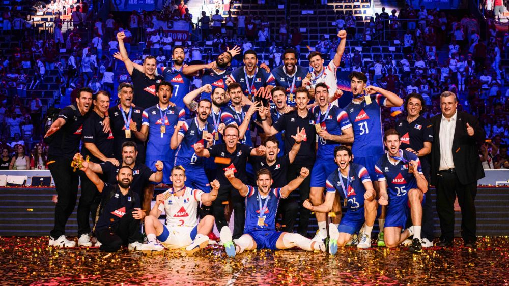 6月30日,法國隊在慶祝奪冠。圖片來自國際排聯(lián)官網(wǎng)。