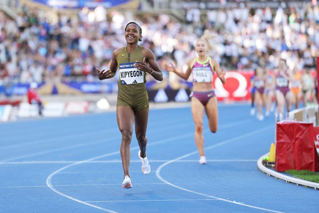 去年的鉆石聯(lián)賽巴黎站比賽中,基普頁真曾創(chuàng)造女子5000米世界紀(jì)錄。此次她參加的項(xiàng)目是1500米。在配速員的引領(lǐng)下,肯尼亞人前800米用時(shí)2分4秒,隨后配速員退出賽道,基普頁真速度不減,最終她以3分49秒04的成績率先撞線,將自己去年在鉆石聯(lián)賽佛羅倫薩站創(chuàng)造的世界紀(jì)錄提升了0.07秒。