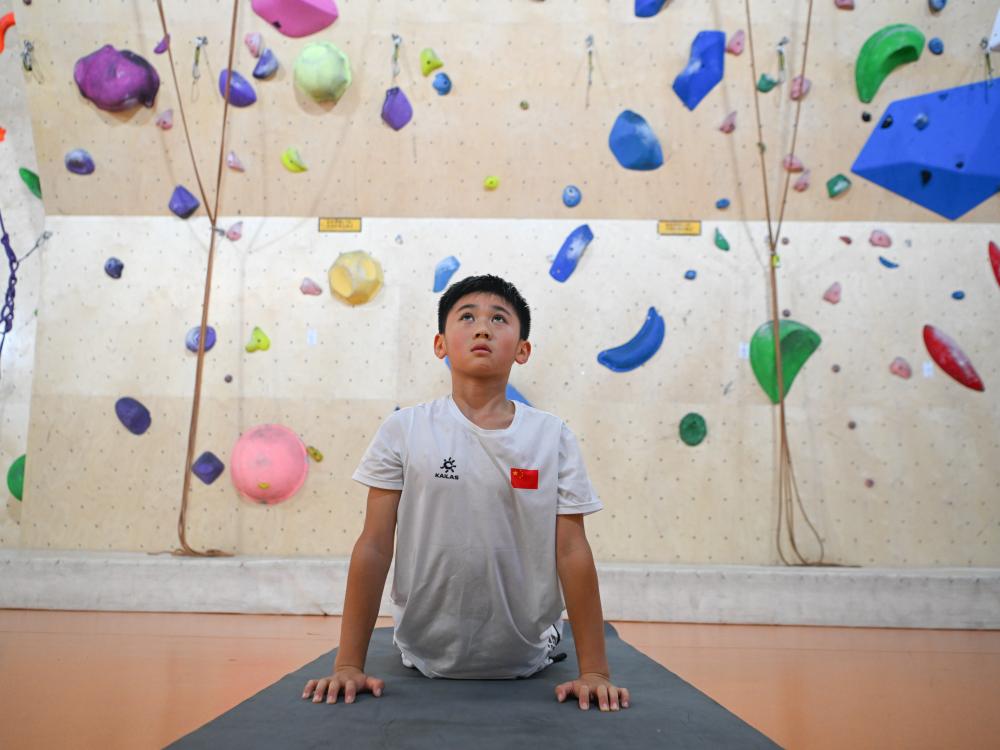 7月16日,方先旻在訓(xùn)練攀巖。新華社記者 王曦 攝