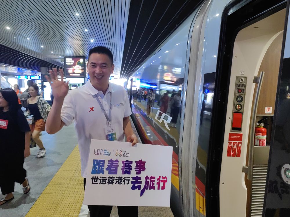 “世運會明年將在成都舉辦,屆時一定會有更多香港旅客乘坐蓉港高鐵到成都觀看比賽和旅游?!比馗鄹哞F首發(fā)列車長吳松霖說,他們將做好保障服務(wù),希望蓉港高鐵進一步拉近兩地民眾的心。