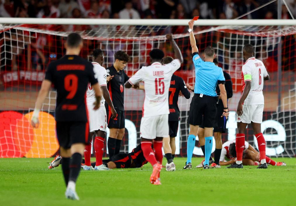 摩納哥主場(chǎng)迎戰(zhàn)巴薩的比賽中,開(kāi)場(chǎng)第10分鐘,客隊(duì)門將特爾施特根后場(chǎng)出球失誤,埃里克·加西亞不得不在弧頂處犯規(guī),放倒了斷球的南野拓實(shí),主裁判將加西亞紅牌罰下。巴薩不得不以10人應(yīng)戰(zhàn)。