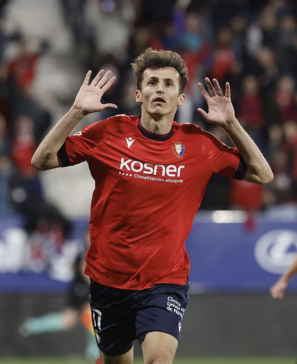 奧薩蘇納隊前鋒布迪米爾慶祝進球。圖片來自西甲聯(lián)賽官方社交媒體賬號