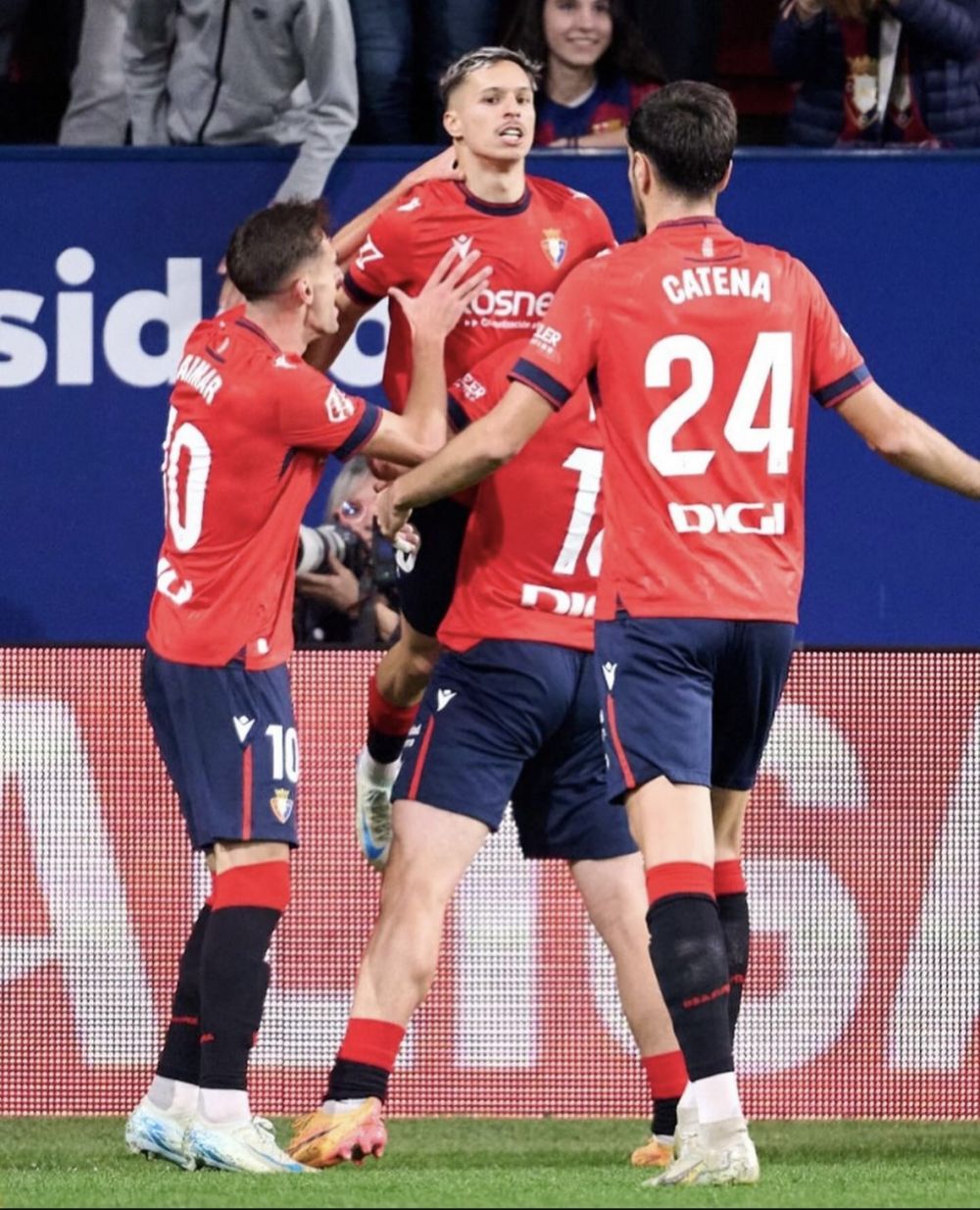 奧薩蘇納隊球員慶祝進球。圖片來自西甲聯(lián)賽官方社交媒體賬號