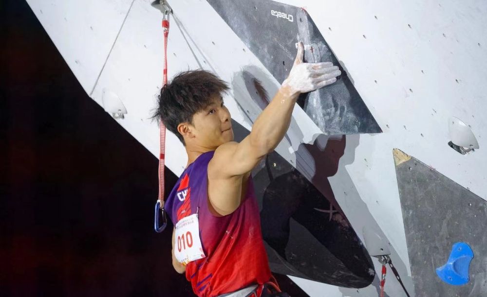當(dāng)天,潘愚非右臂打著繃帶上場,整條線路用他自己的話說“爬得比較掙扎”。他在9月的全國錦標(biāo)賽中右小臂拉傷,亞錦賽攀石項目結(jié)束后又有復(fù)發(fā)跡象。14日的決賽中,他爬到最后階段在高墻上一邊發(fā)力一邊吶喊。