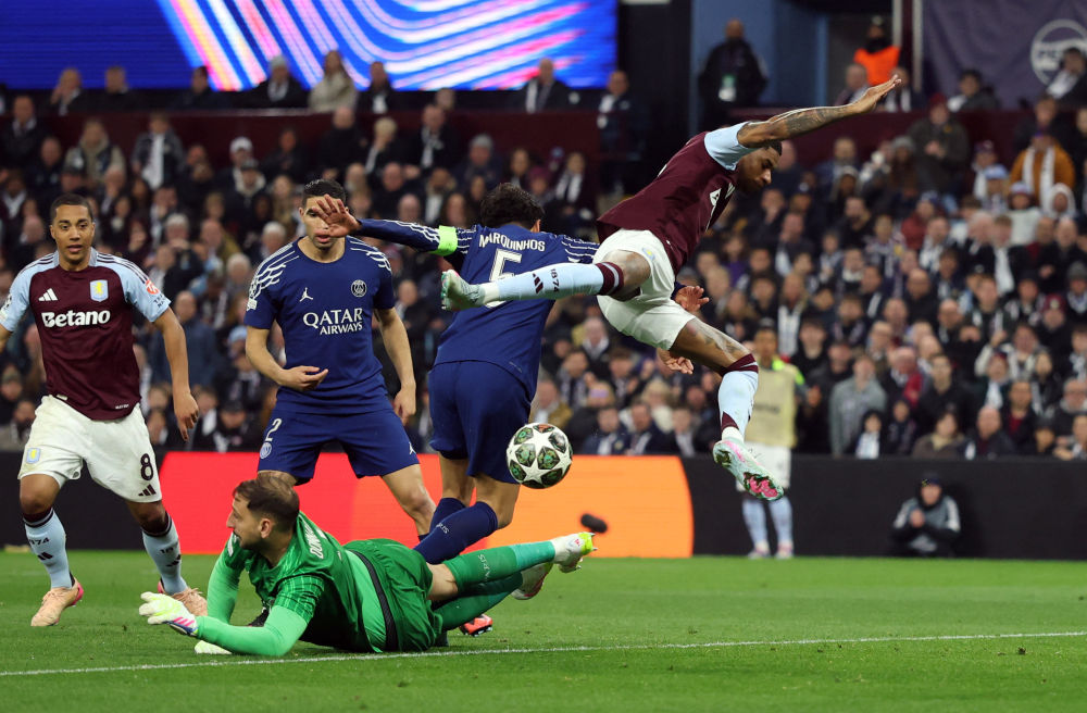 在維拉公園球場的雨戰(zhàn)中,首回合主場3:1勝出的巴黎圣日耳曼先聲奪人。第11分鐘,登貝萊左路突破后橫傳門前,維拉門將馬丁內斯撲球失誤,阿什拉夫抓住機會勁射破網?!按蟀屠琛痹诘?7分鐘打出高效反擊,登貝萊助攻左后衛(wèi)門德斯低射命中,將領先優(yōu)勢擴大為2:0。