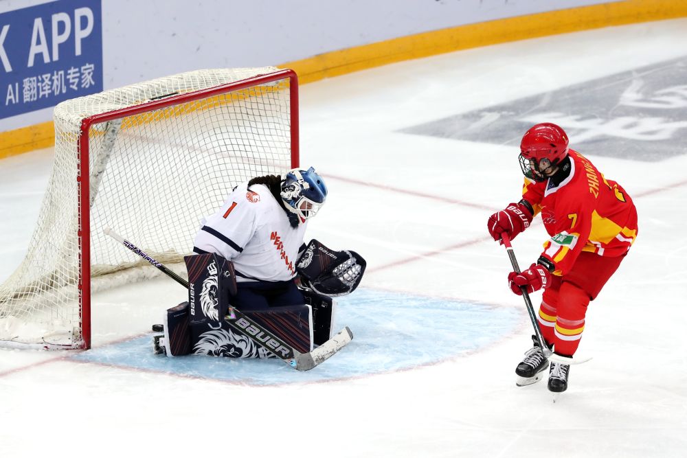 比賽伊始,雙方攻勢積極。第三分鐘,荷蘭隊打出精妙配合,科拉德門前補射得手,冰球從中國隊門將詹佳慧腿下滑入球網,比分變?yōu)?:1。