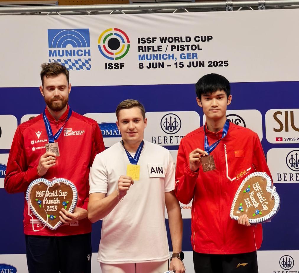 這是盛李豪本年度的第二枚世界杯分站賽獎牌,今年4月,他在射擊世界杯秘魯站上拿到男子10米氣步槍項目的金牌。