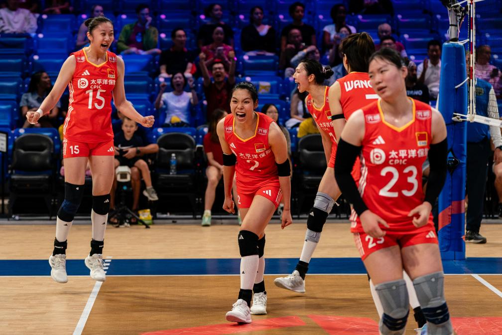 決定勝負(fù)的第五局,中國隊(duì)一度以10:7領(lǐng)先,但多米尼加隊(duì)追至13平。面對令人屏息的局末關(guān)鍵分,中國隊(duì)干脆利落連得兩分,以15:13笑到最后。