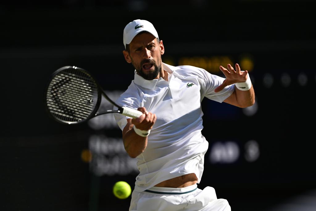 7月11日,焦科維奇在比賽中回球。當(dāng)日,在英國倫敦舉行的2025溫布爾登網(wǎng)球公開賽男子單打半決賽中,意大利選手辛納3比0戰(zhàn)勝塞爾維亞選手焦科維奇,晉級決賽。新華社記者 趙丁喆 攝
