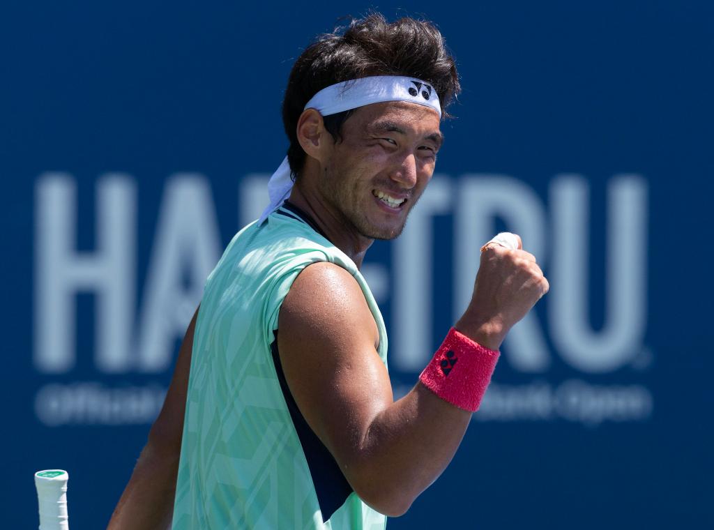 7月28日,中國選手布云朝克特在比賽后慶祝勝利。當(dāng)日,在多倫多舉行的2025年加拿大國家銀行網(wǎng)球公開賽男單首輪比賽中,中國選手布云朝克特2比0戰(zhàn)勝捷克選手科普里瓦,晉級第二輪。新華社發(fā)(鄒崢攝)