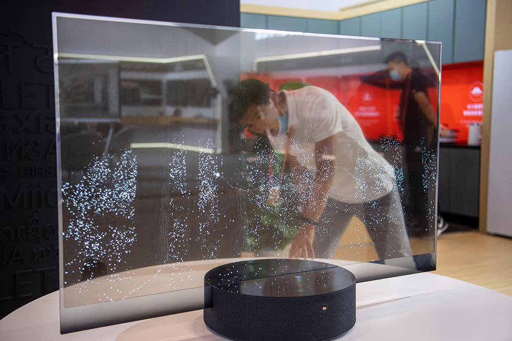 △2020年服貿(mào)會(huì)綜合展區(qū),參觀者正在感受透明電視。