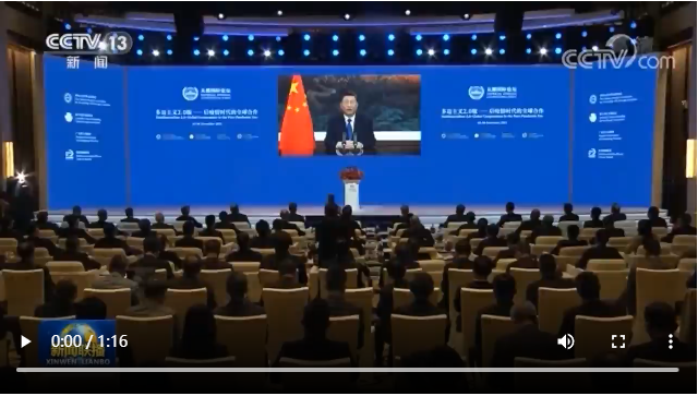 12月5日,國(guó)家主席習(xí)近平在北京向“2021從都國(guó)際論壇”開幕式發(fā)表視頻致辭。新華社記者 黃敬文攝